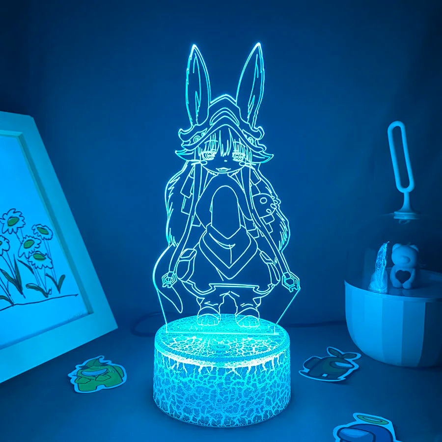 Dive into the mystery of the Abyss with this Made in Abyss–themed 3D LED Night Light — a stunning display piece designed for fans who want beautiful artwork, atmosphere, and a touch of fantasy in their room décor. Featuring crisp, high-detail line art inspired by the world of Made in Abyss, the lamp creates a glowing 3D effect that brings characters and scenes to life. Whether it highlights Riko and Reg on their descent, Nanachi’s warm charm, or iconic Abyss motifs, the illuminated design looks magical, soft, and instantly eye-catching.
