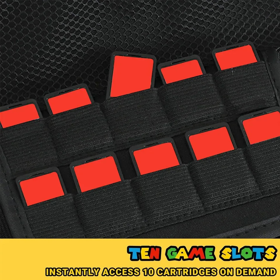 The interior features a custom-molded design with compartments to securely hold your Switch 2 console, controllers, charging cables, and game cartridges. Its compact and ergonomic design makes it easy to carry, while the waterproof exterior keeps your gear dry in any weather.
