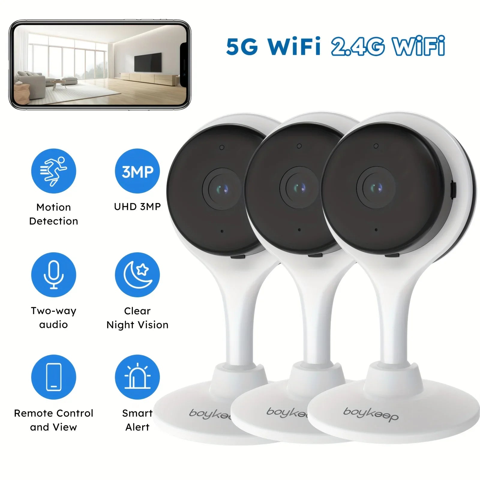 Protect and monitor your home with this set of three indoor wireless security cameras. Each camera delivers clear HD resolution for sharp, detailed footage, ensuring you never miss important moments. The motion and audio alert system instantly notifies you of unusual activity, keeping you informed no matter where you are.